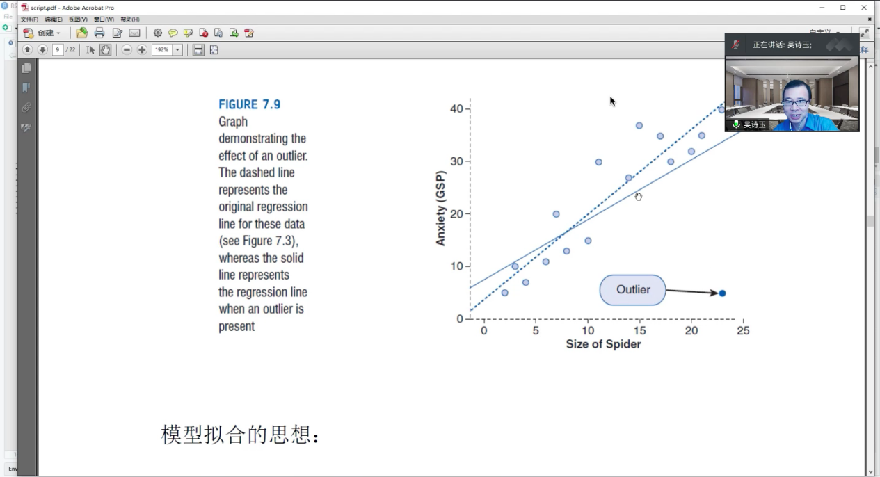 吴诗玉教授介绍了“模型拟合”的思想,以处理异常值。并从个人经历、研究数据、以及学术界常规做法出发,讨论如何鉴别异常值,提出了几种鉴别方法、进行了演示。同时,吴诗玉教授重点讨论与演示了如何从模型诊断的角度看异常值。