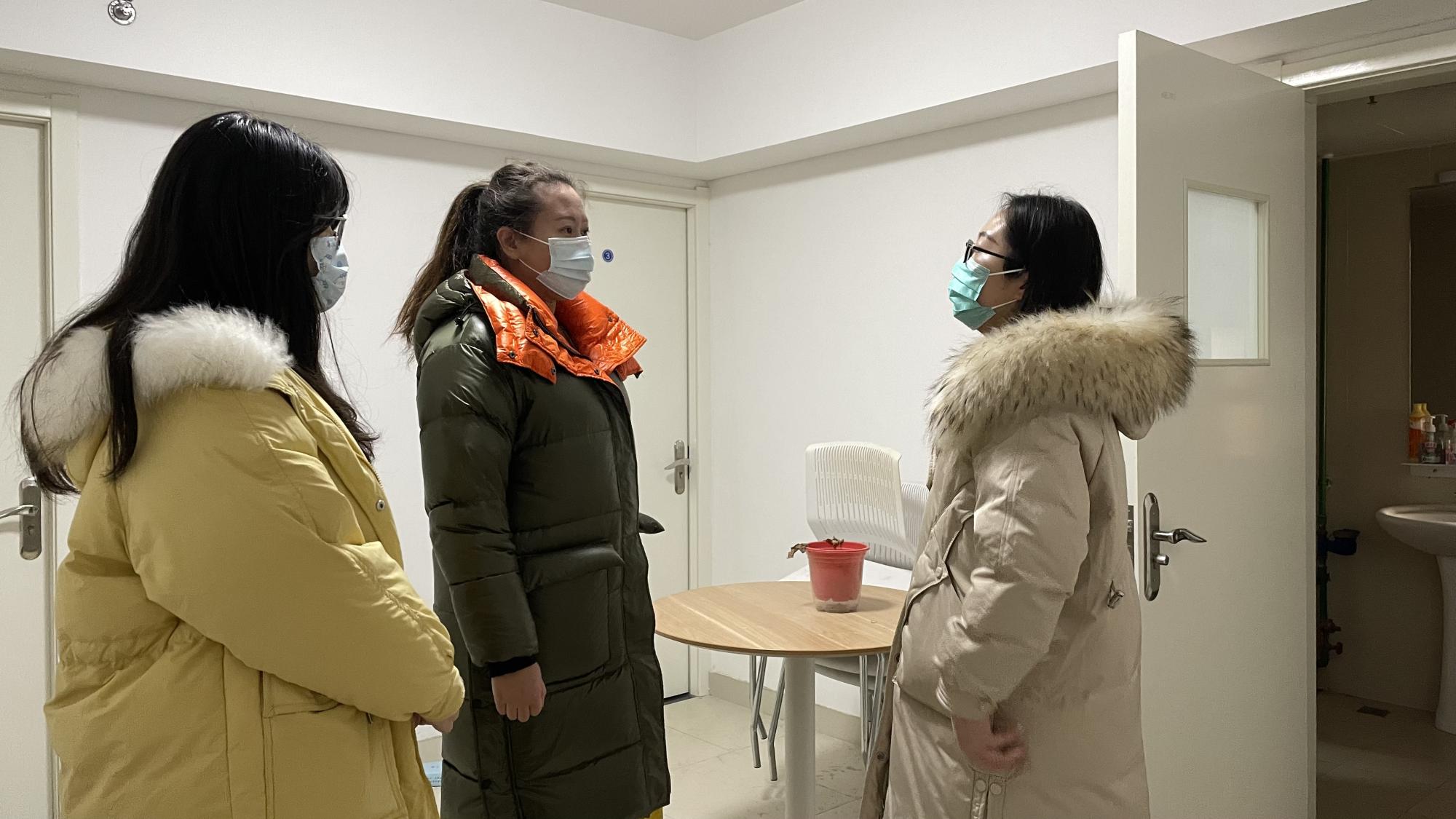 “最近感觉怎么样?” “疫情有没有给大家的学习和生活带来什么影响?”走访宿舍的过程中,薛老师亲切地询问大家的近况,关注疫情下同学们的心理状态,也提醒同学们要注意寝室卫生,养成多通风的好习惯,多参加体育锻炼,努力提高自身的身体素质。有同学就能否回家过年和封校后快递的收发等问题提出了自己的担忧,老师一一进行了解答,并鼓励大家保持良好心态。