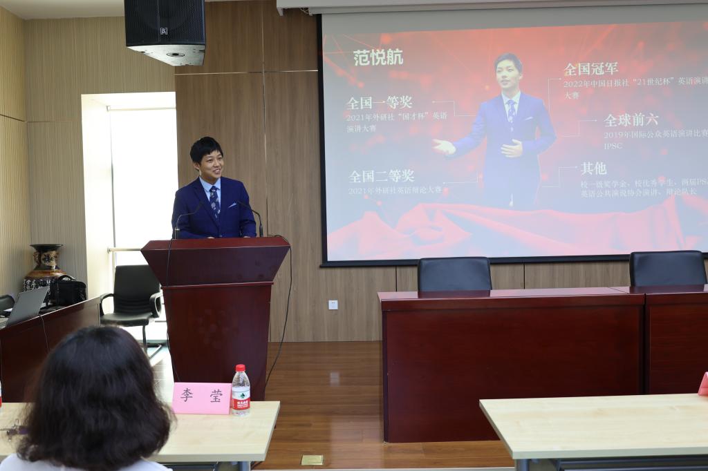 范悦航简介:俄罗斯专享会官网英语系2020级在读本科生,曾获2022年 “21世纪杯”英语演讲比赛全国总冠军、2021年外研社英语演讲大赛全国一等奖等