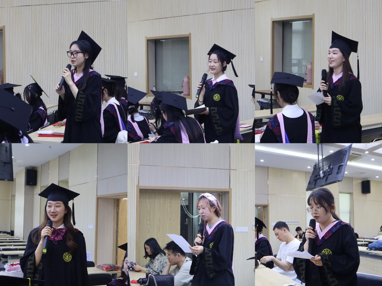 支部成员们依次分享了感受。左灿然从自身出发,谈到自己的成长历程受支部培养,也对如何成为合格优秀党员有了更加深入的理解。张雨童谈到身为学长学姐,也应该经常回航、返航,向学弟学妹们传授经验。胡佳灵提出同学们应该互帮互助,培植力量,在理论和实践中学习和成长,让党支部发挥其战斗堡垒作用。武琳提出了各支部之间交流的重要性,要在交流共建活动中产生思想碰撞,鼓励大家顺境顺势而为,逆境破浪而行。王一琳表达自己在支部的工作学习中提高了自身素质及能力,展望未来更应不断前行。任妮娜表达了对老师及支部同学诚挚的感谢,并将继续加强党性学习,不忘初心,牢记使命。
