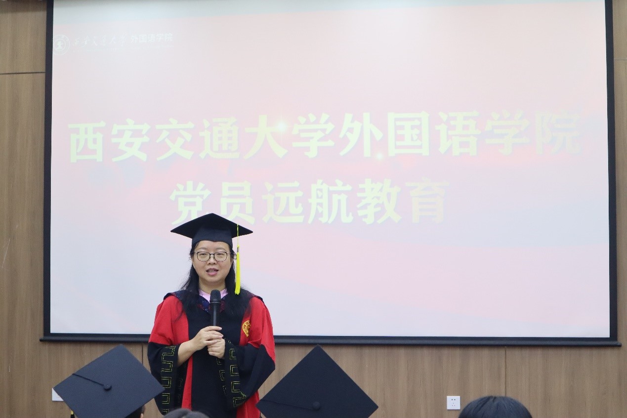 首先由党委书记张长安教授寄语。他阐述了对毕业生党员的嘱托,要将优秀的品质和能力持续贯通,让其成为习惯,践行终身。在精神层面上,要时刻将建党精神和来自交大人的西迁精神铭刻在心,外化于行。在艰苦环境中学会创造条件,突破自我限制,推己及人,引领团队发挥集体力量,在今后持续发挥好党员的先锋模范作用。